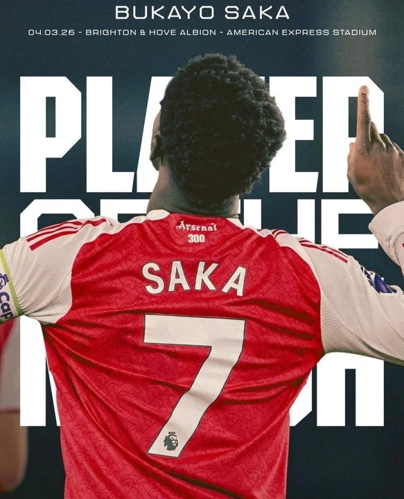 本场比赛萨卡打进全场唯一进球,他也当选阿森纳官方评选出的本场比赛队内最佳球员。